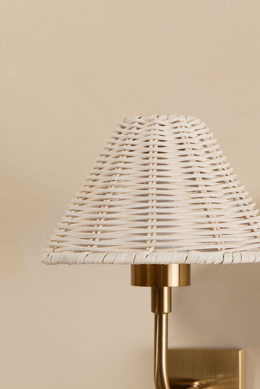 Duruga Rechargeable Wall Light in Brass & White Rattan