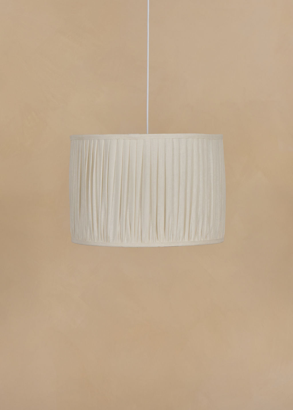 Simple, chic, and quietly luxurious — crafted from soft, gathered Indian linen in a fresh white hue. Its classic drum shape and delicate texture bring a relaxed elegance to any space. The natural linen filters light beautifully, casting a warm, inviting glow that's perfect for bedrooms, living rooms, or calm corners in need of a refined touch.