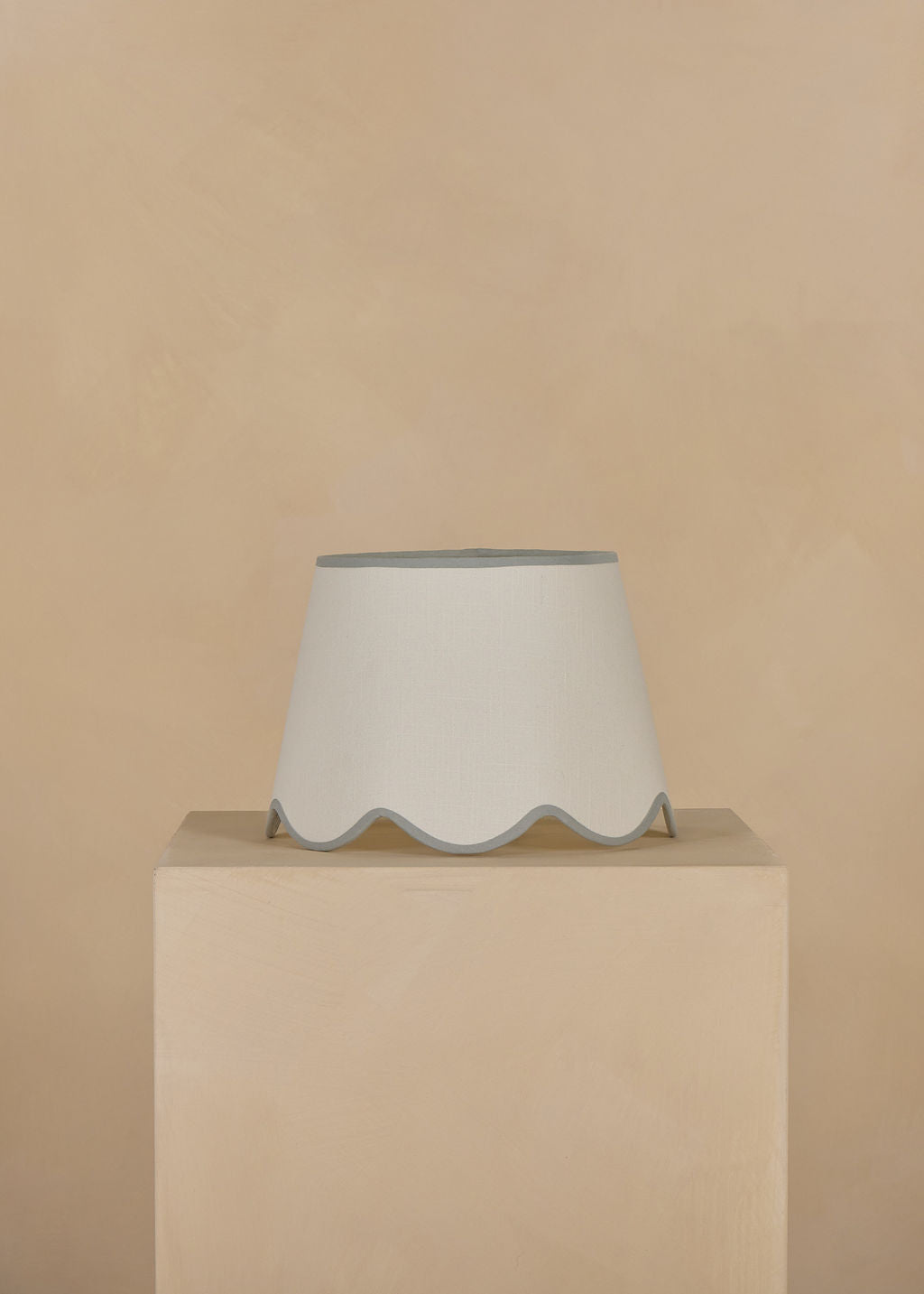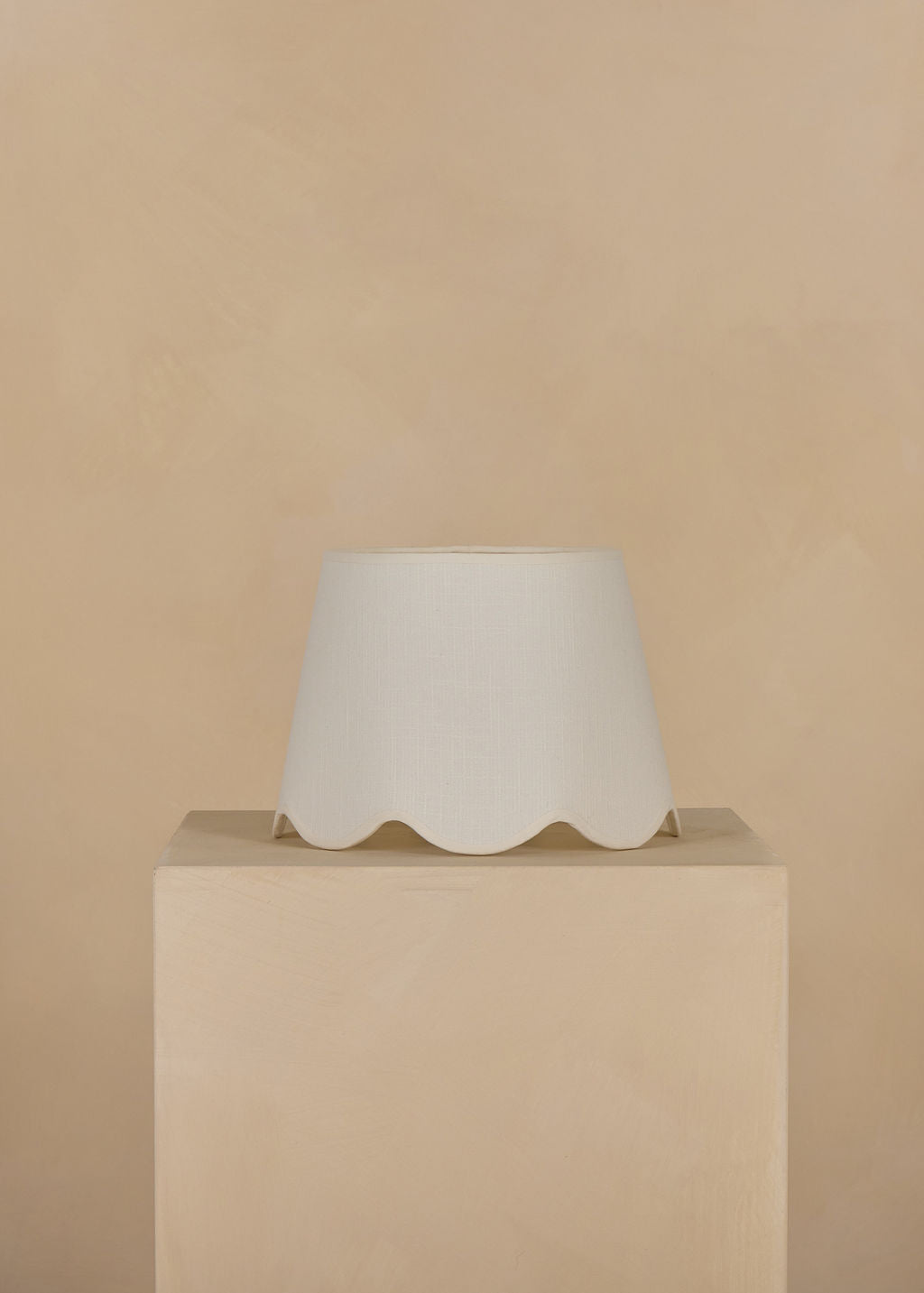 Big and beautiful, our 35cm white scallop lampshade is ideal for larger wider bases and floor lamps. The piece is handcrafted from a high quality white slub cotton with a gorgeous natural varied texture. It is finished with our Soffle signature scalloped edge in a trimmed cotton colourway of your choice.